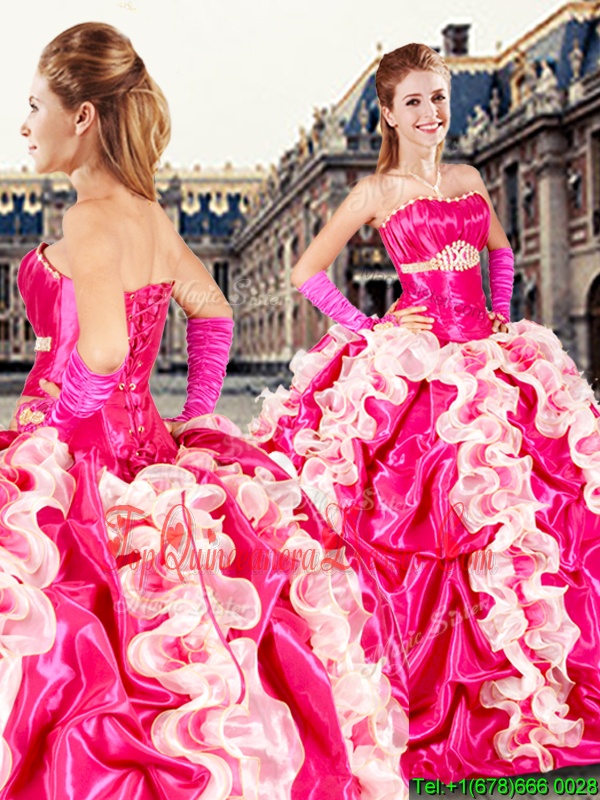 Sleeveless Organza and Taffeta Floor Length Lace Up Sweet 16 Quinceanera Dress in Hot Pink for with Beading and Ruffles and Pick Ups