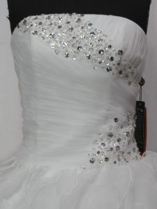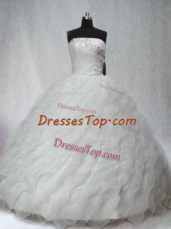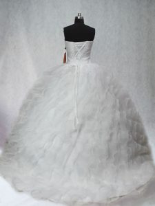 Sleeveless Organza Brush Train Lace Up 15 Quinceanera Dress in White with Beading and Ruching