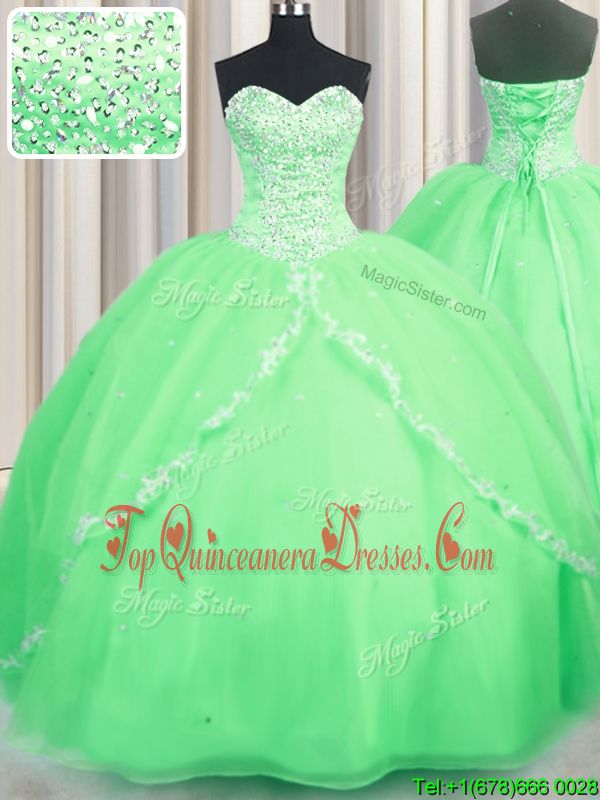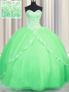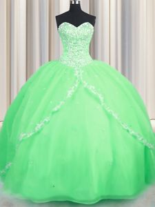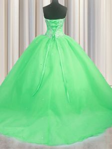 Sleeveless Organza Brush Train Lace Up Sweet 16 Dress for Military Ball and Sweet 16 and Quinceanera