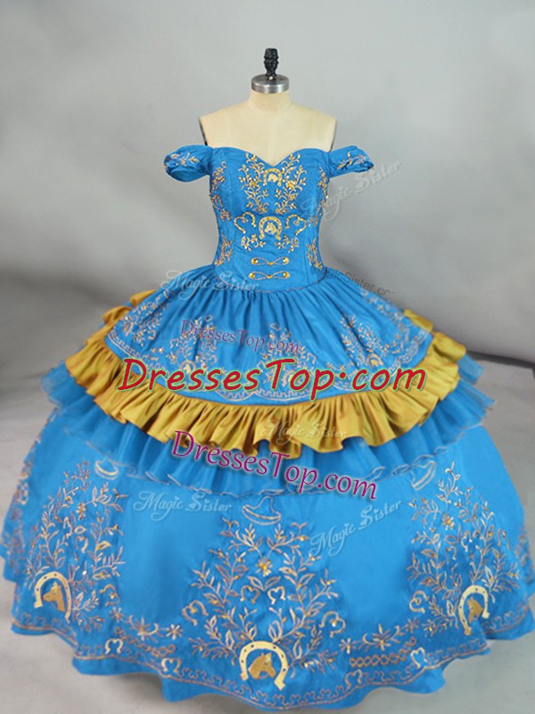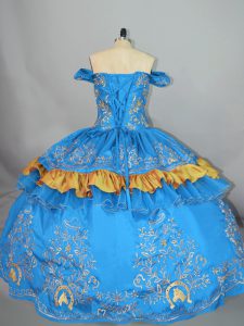 Sleeveless Organza Floor Length Lace Up Ball Gown Prom Dress in Blue with Embroidery