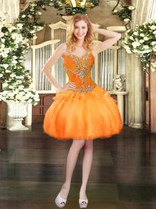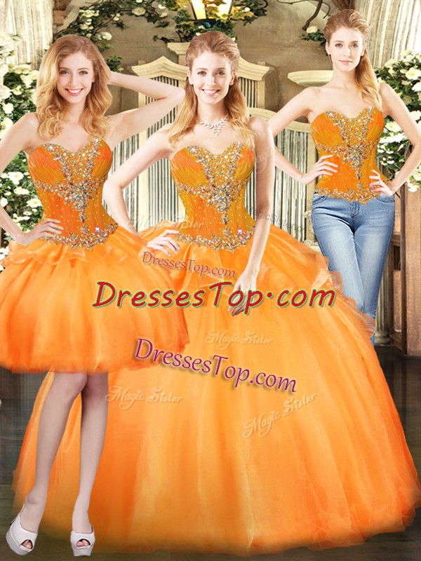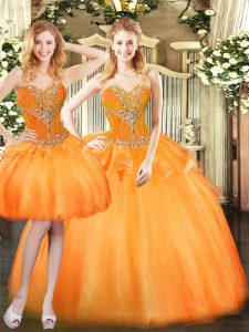 Sleeveless Organza Floor Length Lace Up Ball Gown Prom Dress in Orange Red with Beading and Ruffles