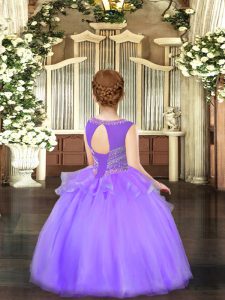 Sleeveless Organza Floor Length Lace Up Pageant Dress Wholesale in Lavender with Beading