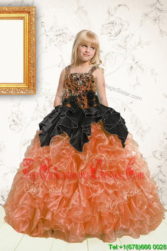 Sleeveless Organza Floor Length Lace Up Pageant Gowns For Girls in Orange for with Beading and Pick Ups