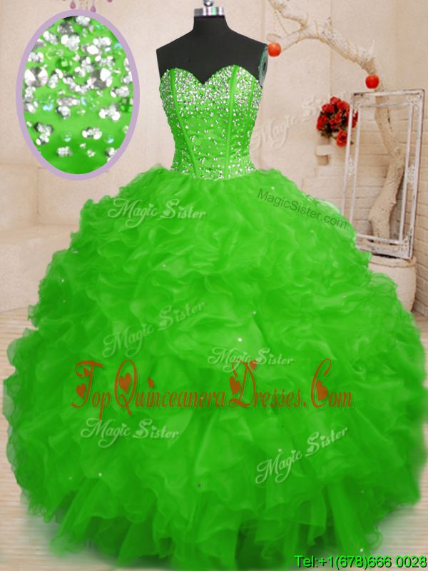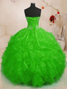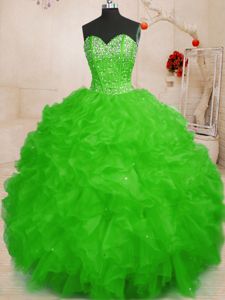 Sleeveless Organza Floor Length Lace Up Quinceanera Dress in for with Beading and Ruffles