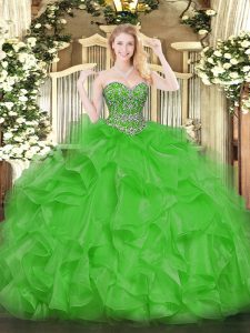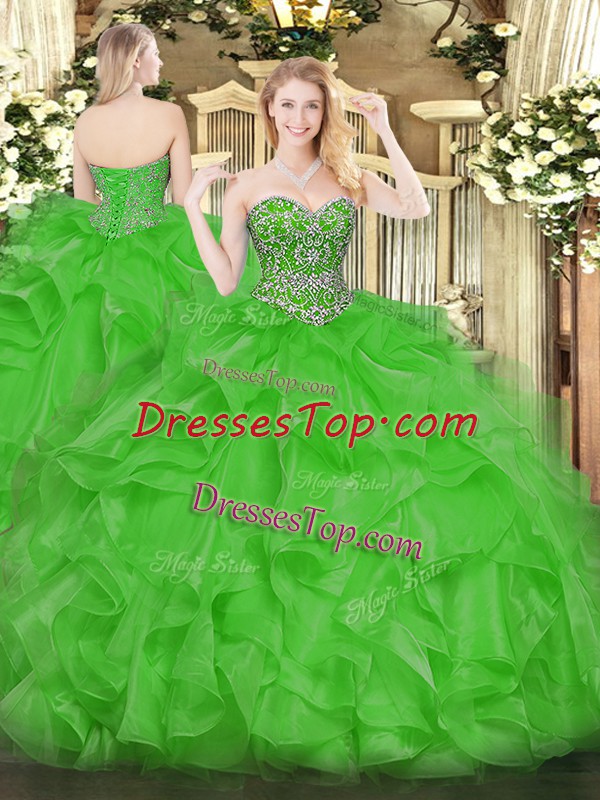 Sleeveless Organza Floor Length Lace Up Quinceanera Dresses in Green with Beading and Ruffles