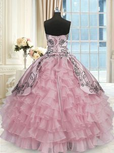 Sleeveless Organza Floor Length Lace Up Quinceanera Gowns in Apple Green for with Beading and Ruffles