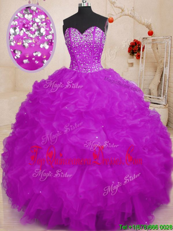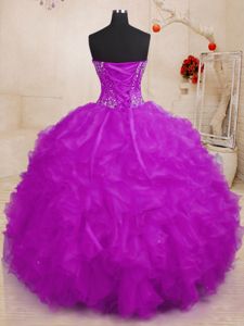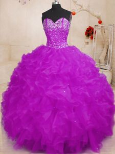 Sleeveless Organza Floor Length Lace Up Quinceanera Gowns in Multi-color for with Beading and Ruffles