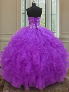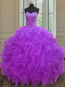 Sleeveless Organza Floor Length Lace Up Sweet 16 Dresses in Purple for with Beading and Ruffles