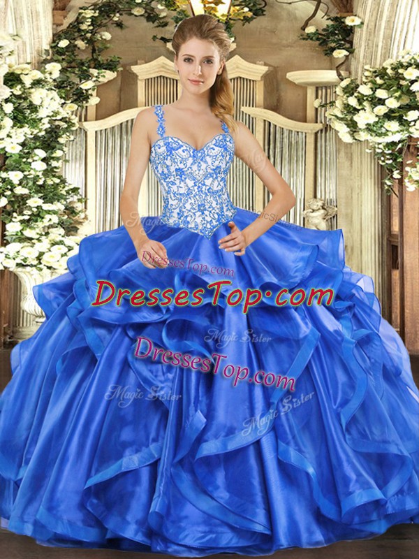 Sleeveless Organza Floor Length Lace Up Sweet 16 Quinceanera Dress in Blue with Beading and Ruffles