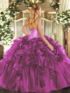 Sleeveless Organza Floor Length Lace Up Sweet 16 Quinceanera Dress in Teal with Beading and Ruffles