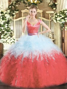 Sleeveless Organza Floor Length Zipper Quinceanera Dresses in Multi-color with Ruffles