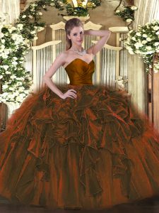 Sleeveless Organza Floor Length Zipper Sweet 16 Dresses in Brown with Ruffles