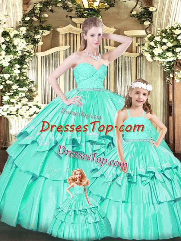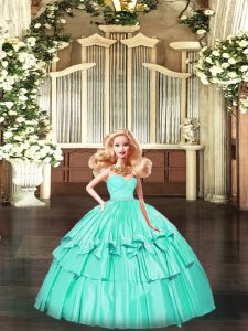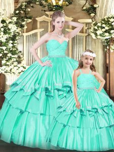 Sleeveless Organza Floor Length Zipper Sweet 16 Dresses in Turquoise with Ruffles