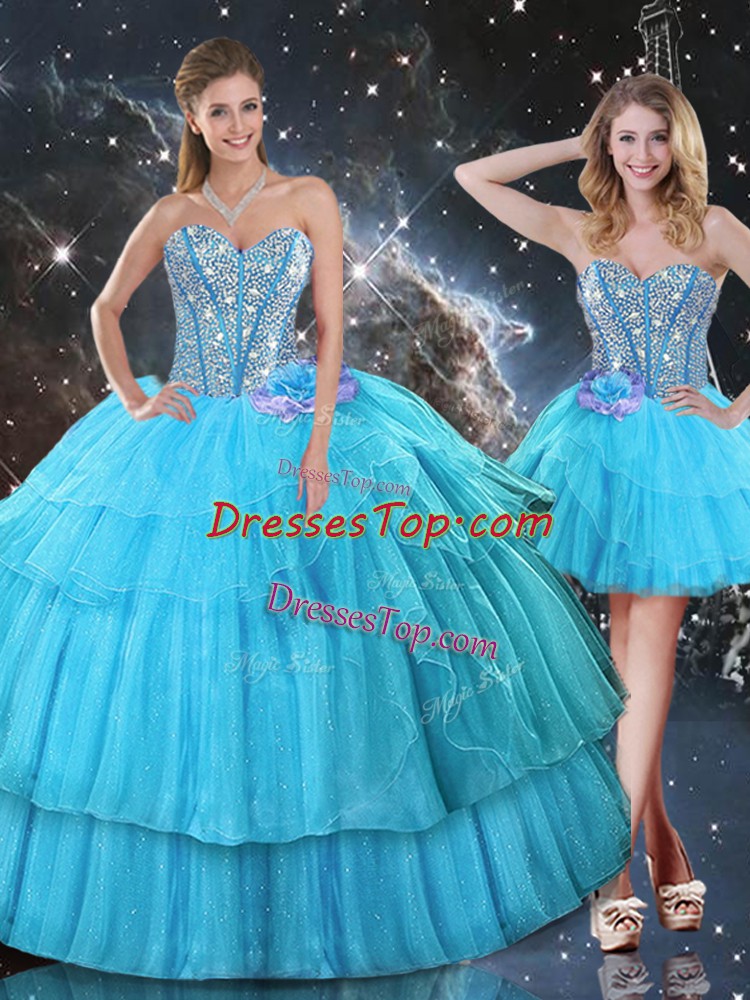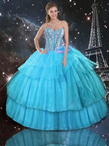 Sleeveless Ruffled Layers and Sequins Lace Up Quince Ball Gowns