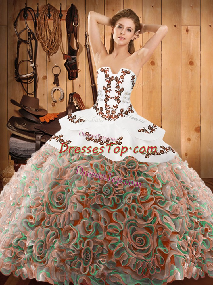 Sleeveless Sweep Train Lace Up With Train Embroidery Quinceanera Dresses