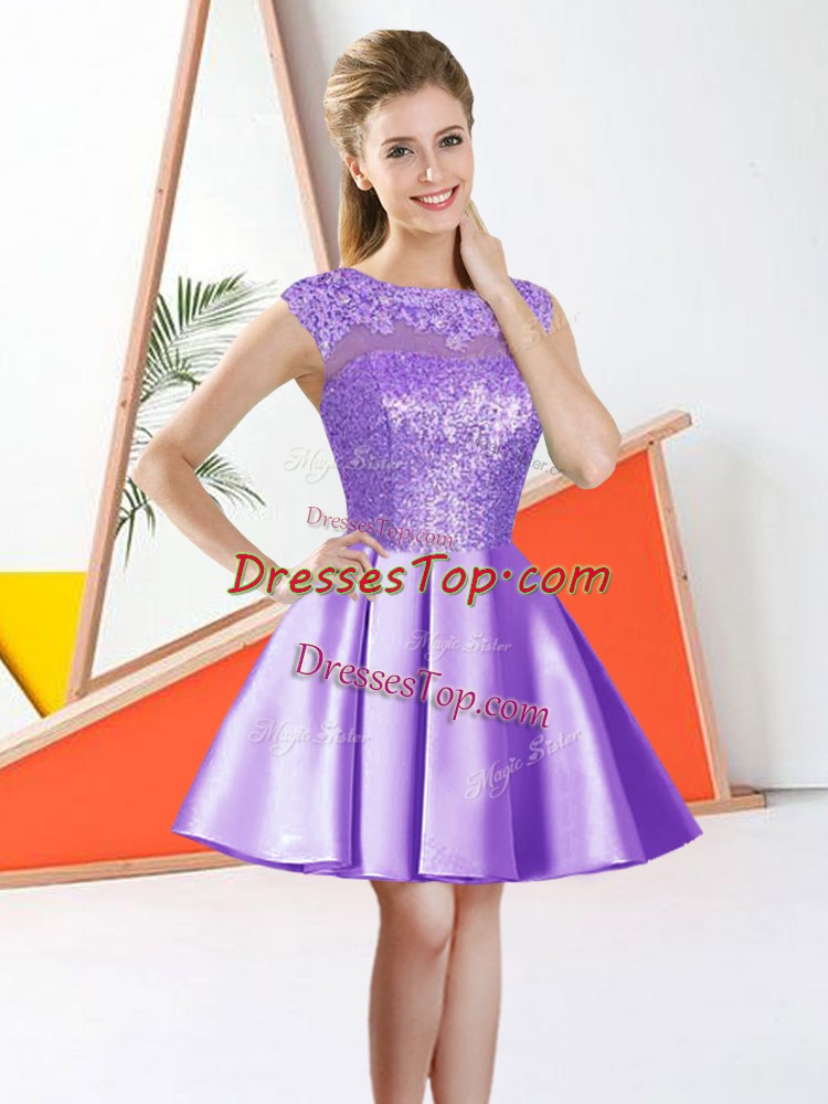 Sleeveless Taffeta and Sequined Knee Length Backless Court Dresses for Sweet 16 in Lavender with Beading and Lace and Sequins