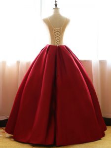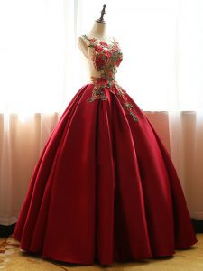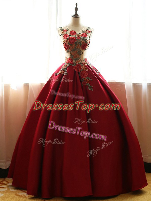 Sleeveless Taffeta Floor Length Lace Up 15 Quinceanera Dress in Wine Red with Appliques