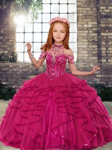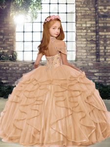 Sleeveless Tulle Child Pageant Dress Beading and Ruffles Lace Up