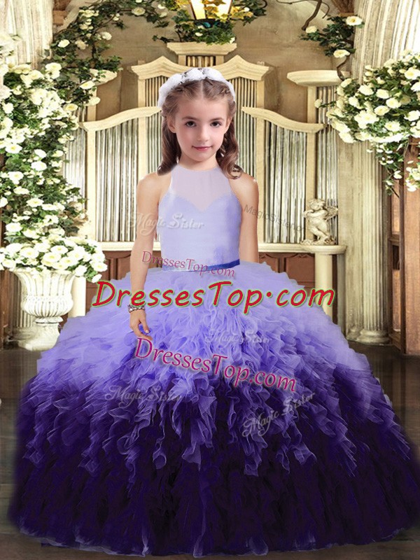 Sleeveless Tulle Floor Length Backless Little Girls Pageant Dress Wholesale in Multi-color with Beading and Ruffles