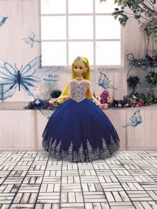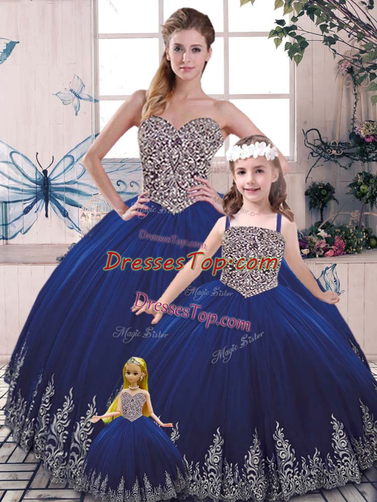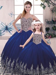 Sleeveless Tulle Floor Length Lace Up 15 Quinceanera Dress in Royal Blue with Beading and Appliques