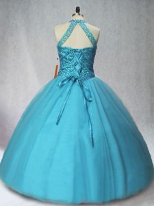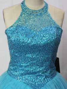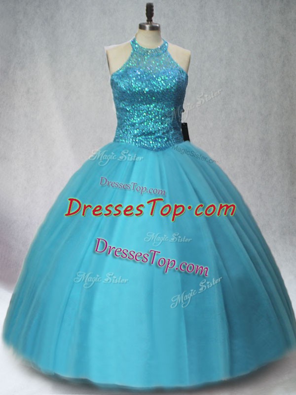 Sleeveless Tulle Floor Length Lace Up Quinceanera Gowns in Teal with Beading