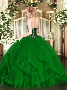 Sleeveless Tulle Floor Length Lace Up Sweet 16 Dresses in Turquoise with Beading and Ruffles
