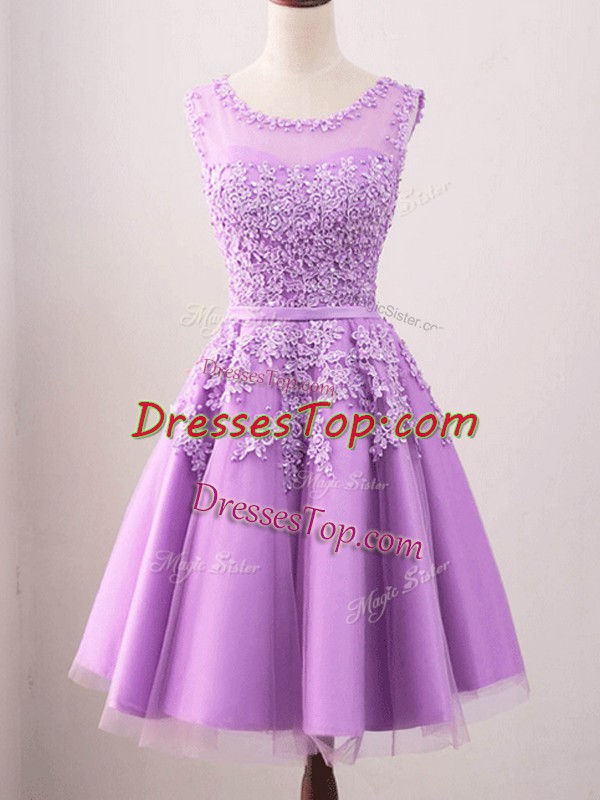 Sleeveless Tulle Knee Length Lace Up Dama Dress for Quinceanera in Lilac with Lace