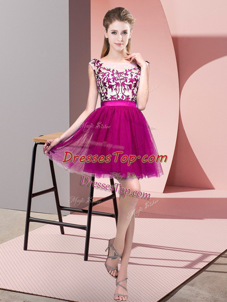 Sleeveless Tulle Mini Length Zipper Quinceanera Dama Dress in Fuchsia with Lace
