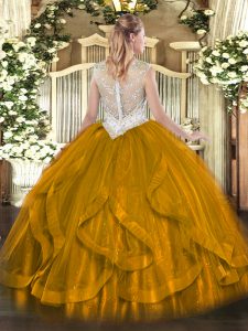 Sleeveless Zipper Floor Length Beading and Ruffles 15 Quinceanera Dress