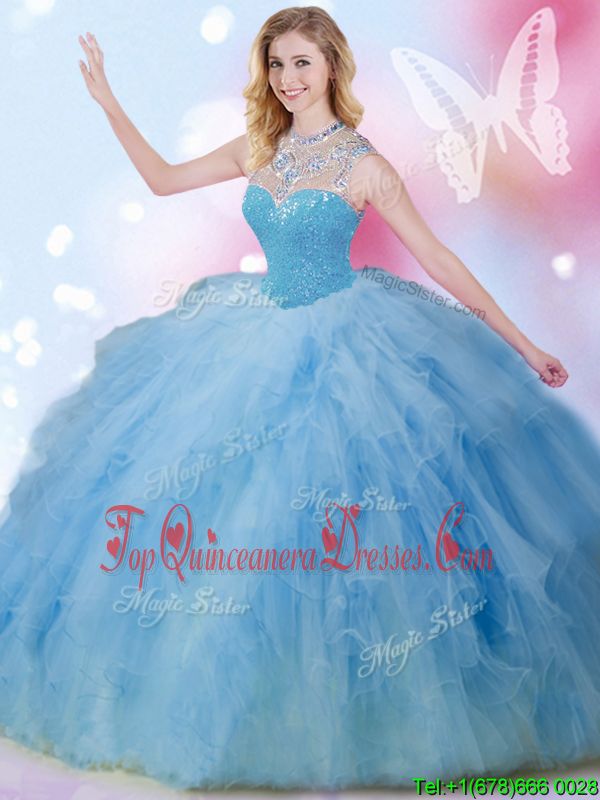 Sleeveless Zipper Floor Length Beading and Ruffles and Sequins Sweet 16 Quinceanera Dress