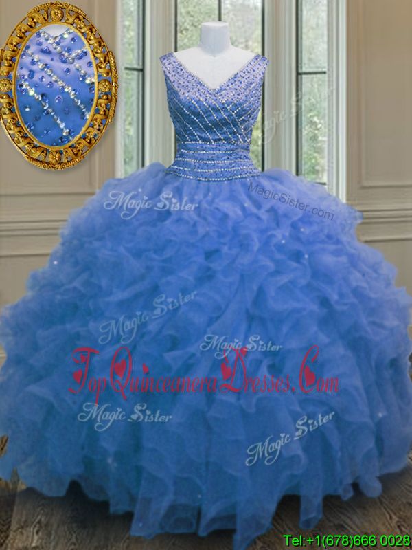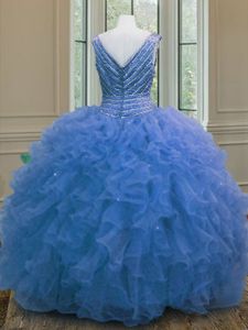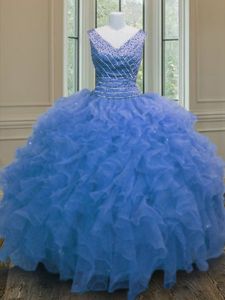 Sleeveless Zipper Floor Length Beading and Ruffles Quinceanera Gowns