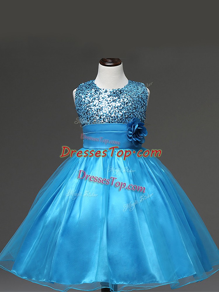 Sleeveless Zipper Knee Length Sequins and Hand Made Flower Kids Pageant Dress