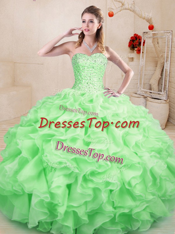Smart Apple Green Ball Gowns Organza Sweetheart Sleeveless Beading and Ruffles Floor Length Lace Up Quinceanera Dresses
