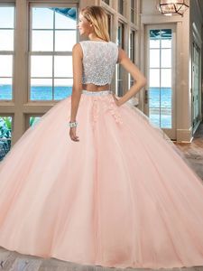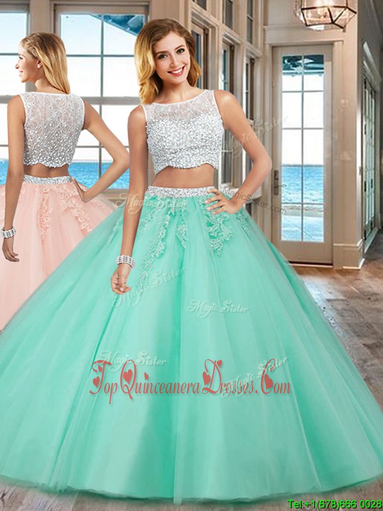 Smart Apple Green Tulle Side Zipper Bateau Sleeveless Floor Length Sweet 16 Dress Beading and Appliques