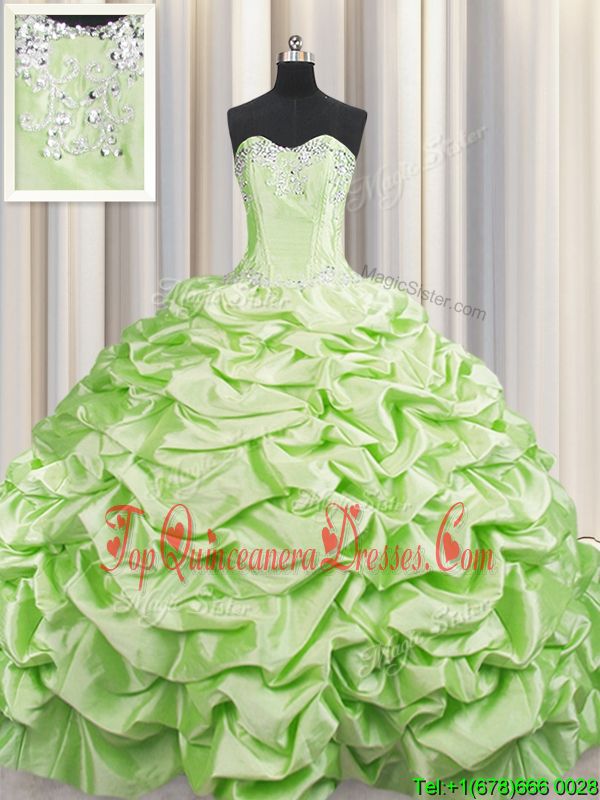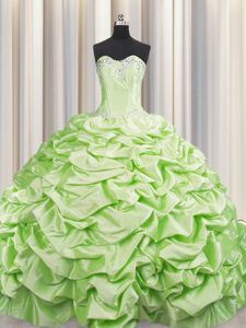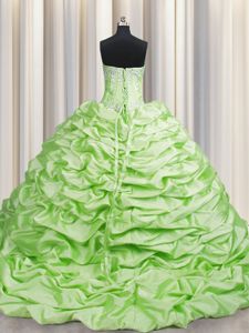 Smart Brush Train Yellow Green Taffeta Lace Up Sweetheart Sleeveless Quinceanera Gown Sweep Train Beading and Pick Ups