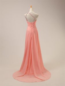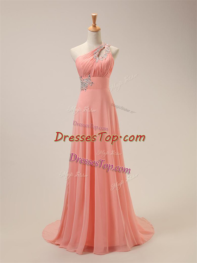 Smart Chiffon One Shoulder Sleeveless Brush Train Zipper Beading Dama Dress in Watermelon Red