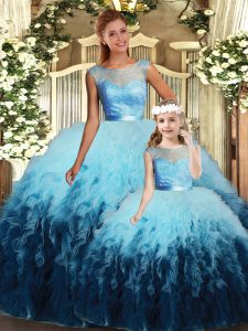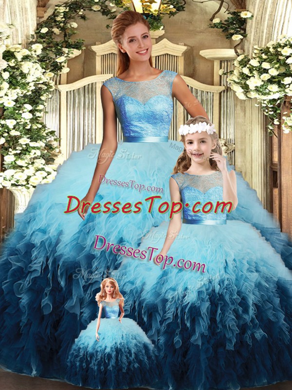 Smart Floor Length Backless 15 Quinceanera Dress Multi-color for Sweet 16 and Quinceanera with Lace and Ruffles