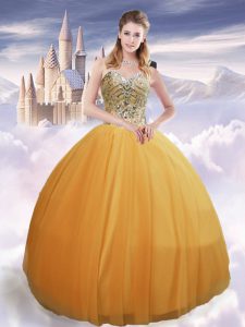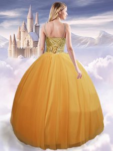 Smart Floor Length Gold Sweet 16 Dress Spaghetti Straps Sleeveless Lace Up