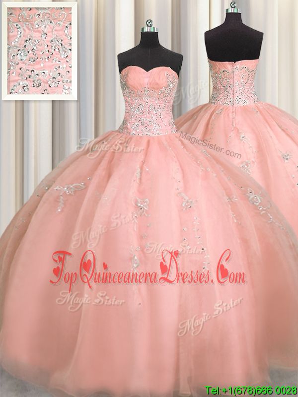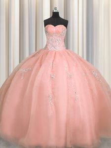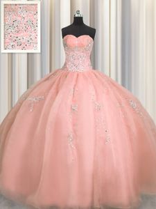 Smart Puffy Skirt Watermelon Red Zipper Ball Gown Prom Dress Beading and Appliques Sleeveless Floor Length