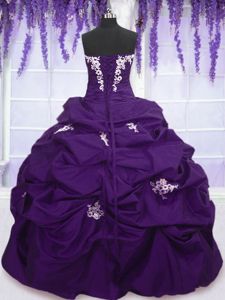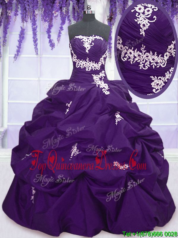 Smart Purple Lace Up Sweetheart Appliques and Pick Ups Quince Ball Gowns Taffeta Sleeveless