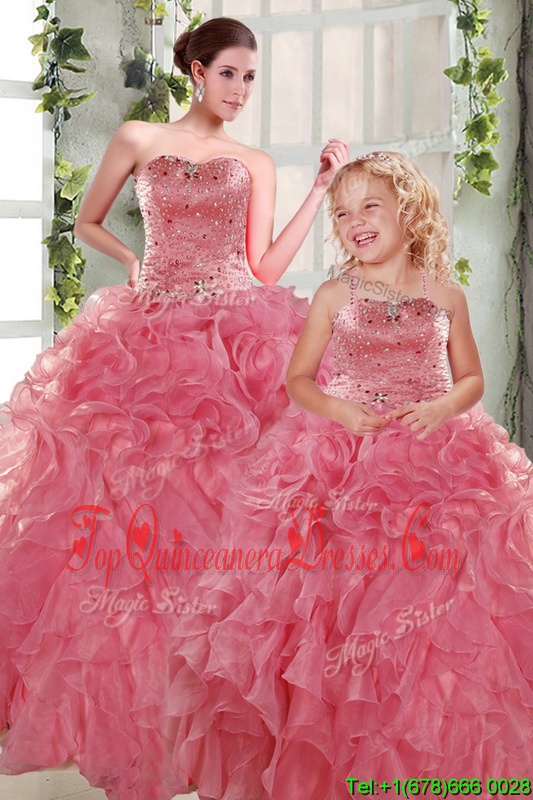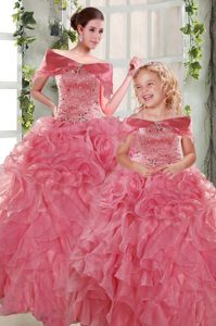 Smart Rose Pink Ball Gowns Organza Strapless Sleeveless Beading and Ruffles Floor Length Lace Up Quinceanera Dresses
