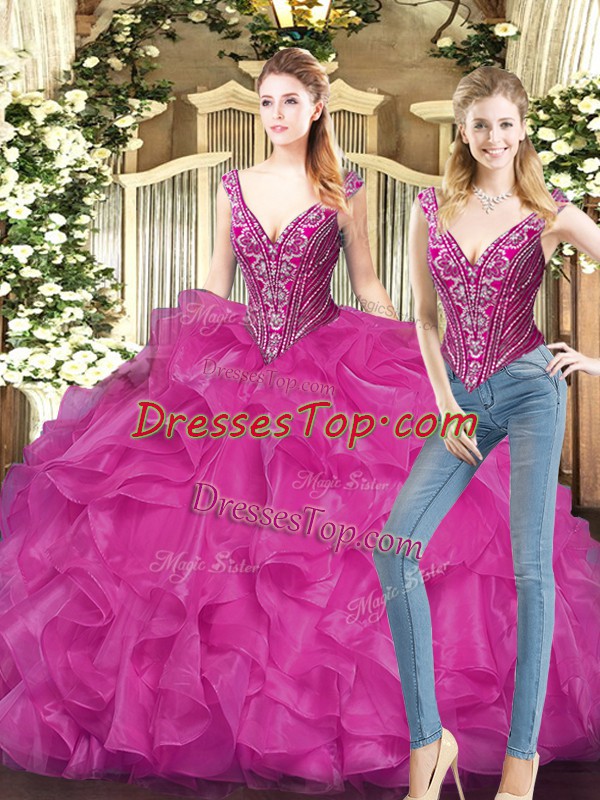 Smart Ruffles Quinceanera Dresses Fuchsia Lace Up Sleeveless Floor Length
