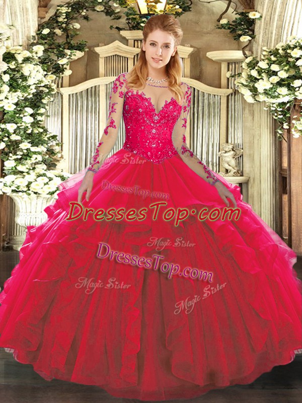 Smart Scoop Long Sleeves Lace Up Sweet 16 Dresses Red Tulle
