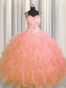 Smart Sequins Really Puffy Floor Length Lavender Quinceanera Gown Strapless Sleeveless Lace Up