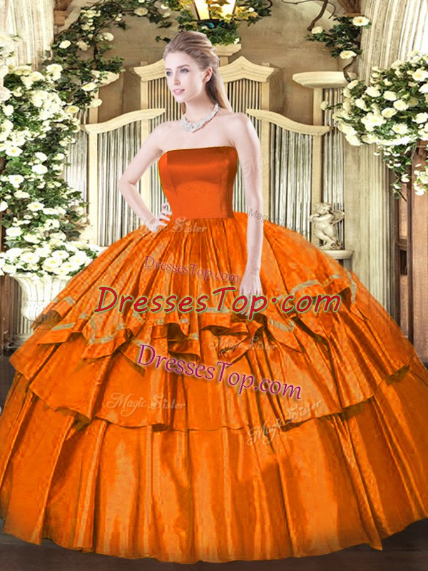 Smart Sleeveless Floor Length Ruffled Layers Zipper Ball Gown Prom Dress with Orange Red