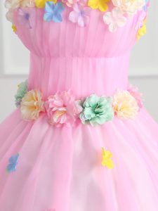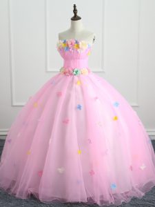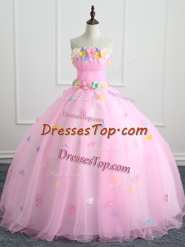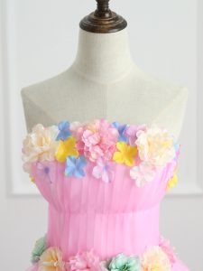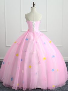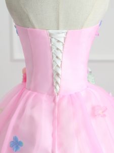 Smart Strapless Sleeveless Lace Up Quince Ball Gowns Pink Organza