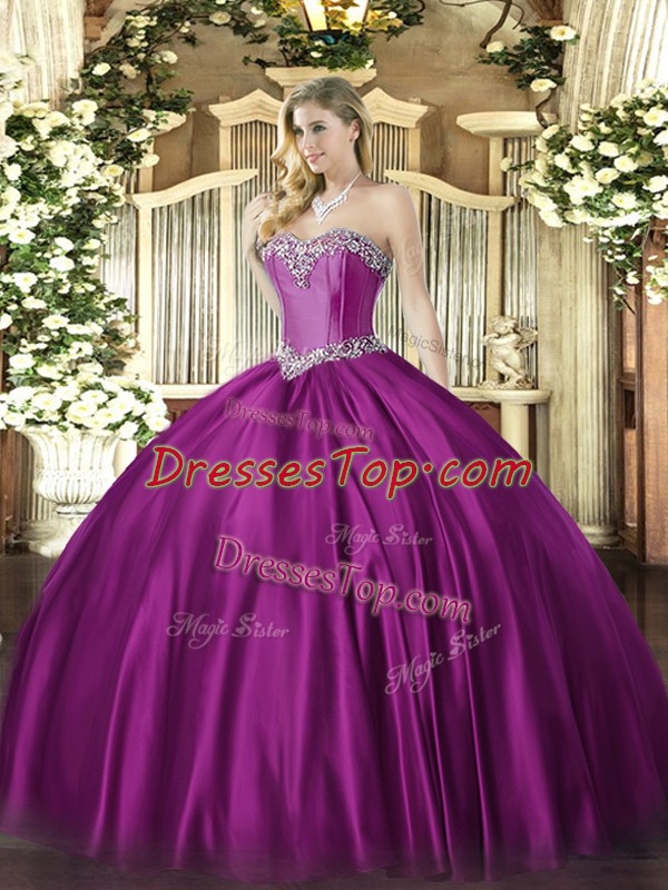 Smart Sweetheart Sleeveless Satin Sweet 16 Dresses Beading Lace Up