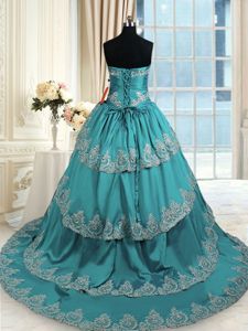 Smart Taffeta Sweetheart Sleeveless Lace Up Beading and Appliques and Ruffled Layers 15th Birthday Dress in Teal