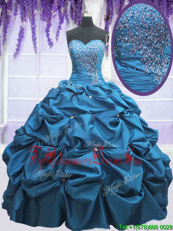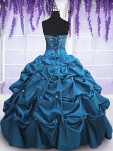 Smart Teal Ball Gowns Beading and Appliques and Pick Ups Sweet 16 Dresses Lace Up Taffeta Sleeveless Floor Length