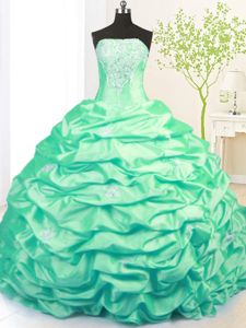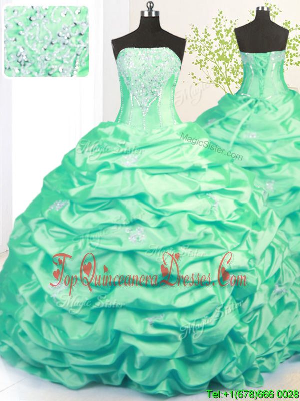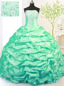 Smart Turquoise Side Zipper Strapless Beading and Pick Ups Sweet 16 Dresses Taffeta Sleeveless Sweep Train
